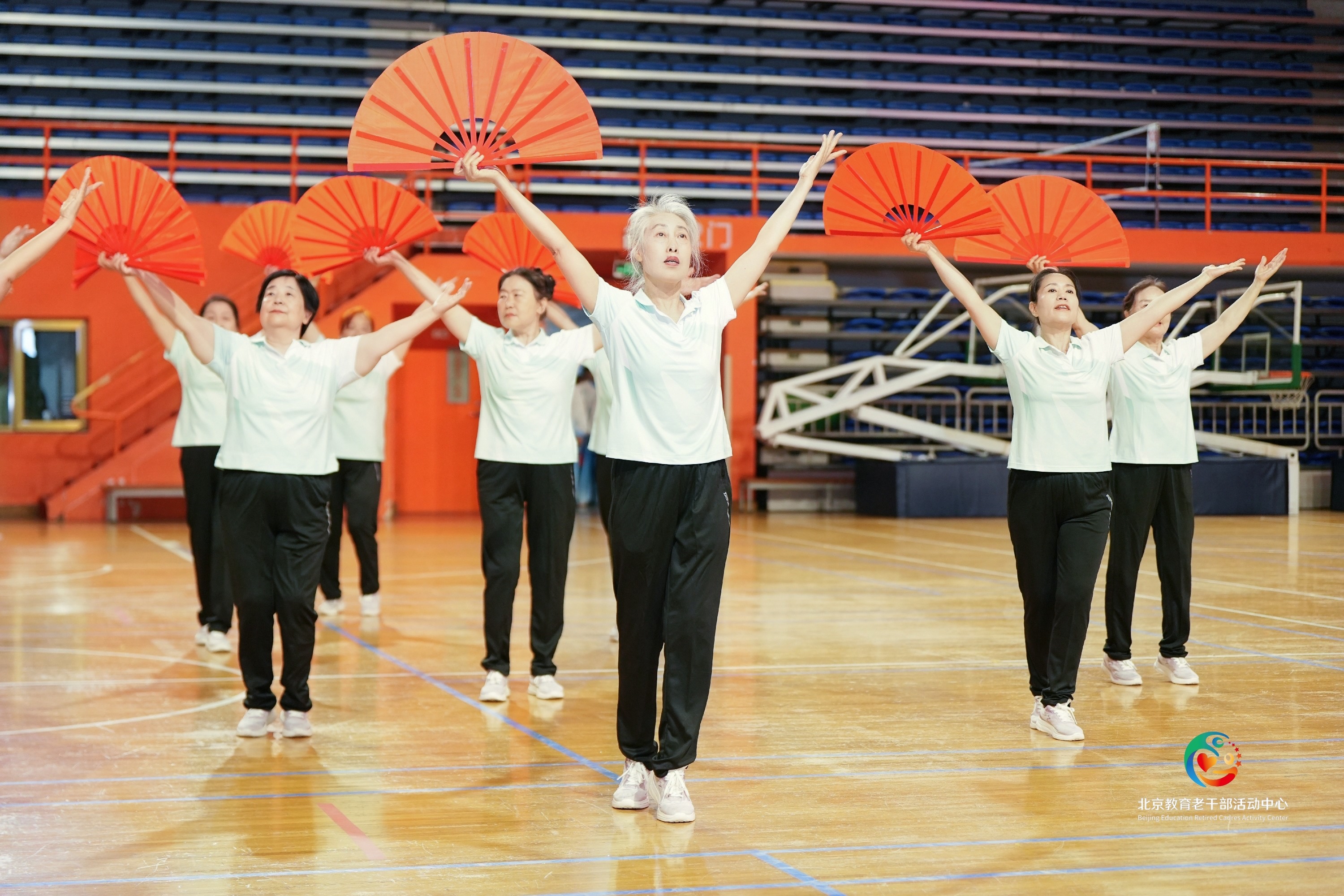 今年的展示活动以太极、柔力球项目为主。为迎接这次风采展示活动,我校组织了由20名退休教职工组成的代表队,以太极扇《万疆》亮相,展现出我校退休老同志们积极乐观、阳光快乐的精神状态。